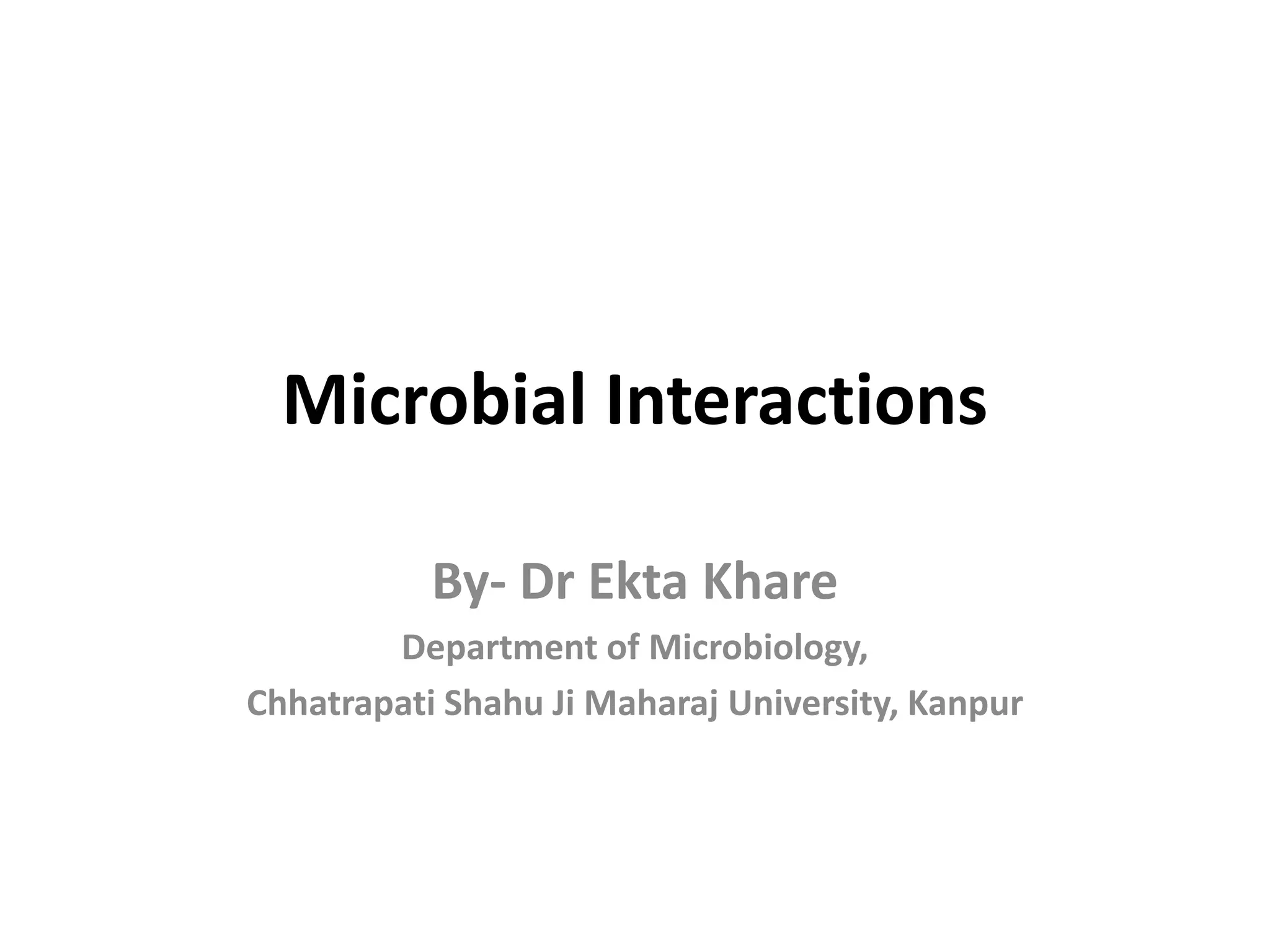 The document provides an overview of various types of microbial interactions, including mutualism, commensalism, protocooperation, ammensalism, competition, parasitism, and predation. It defines each interaction and offers examples, such as the mutualistic relationship between rhizobia and legumes, commensal interactions within gut bacteria, and competitive dynamics among microbes. Additionally, it mentions the Lotka-Volterra equations to describe predator-prey relationships and clarifies the distinction between mutualism and symbiosis.