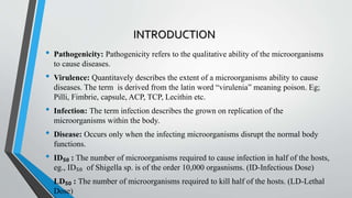 The document discusses various aspects of microbial pathogens, particularly focusing on pathogenicity, virulence, and the growing concerns regarding antibiotic resistance in the poultry industry due to clostridium perfringens. It also explores the effects of berberine on controlling infections, the role of biofilms in environmental persistence of shiga-toxin producing E. coli, and the impact of clostridium botulinum and protozoa on bacterial transmission. Overall, it emphasizes the importance of understanding bacterial pathogens in both clinical and non-clinical environments for better control and prevention strategies.