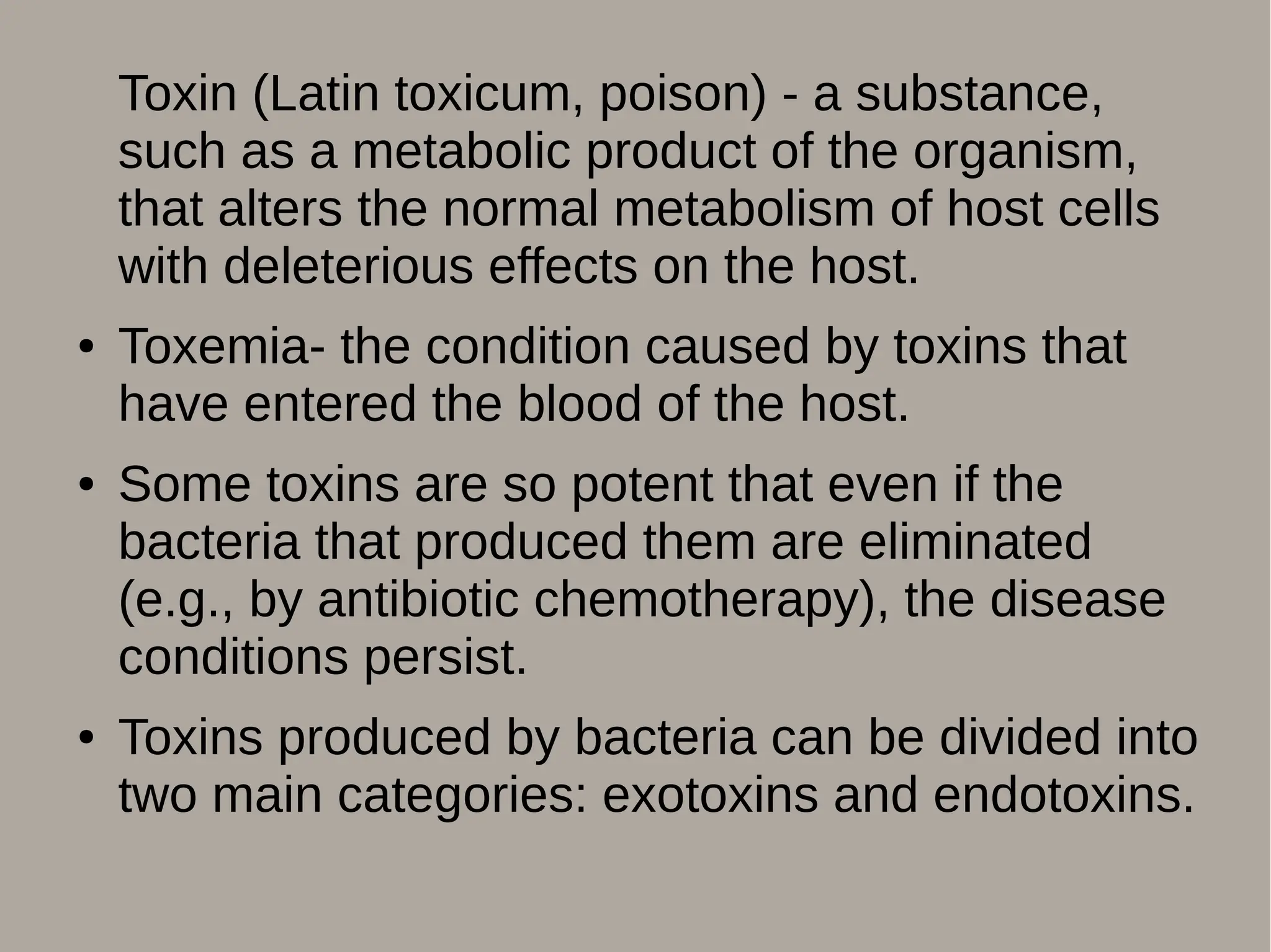 ● Toxemia- the condition caused by toxins that