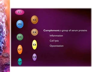 This document provides an overview of basic immunology. It begins with introductions and definitions of key immunology concepts. It then discusses the history of immunology, types of immunity including innate and acquired immunity. It describes the tissues, cells and basic aspects involved in the immune system such as antigens, antibodies and complement system. It also covers major histocompatibility complex, cytokines and disorders of the immune system. The document is intended as a basic introduction and reference for immunology.