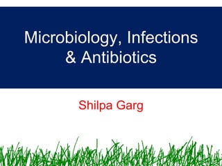 Microbiology is the study of microorganisms like bacteria, viruses, parasites and fungi. Bacteria can be classified based on their shape, staining properties and oxygen requirements. Common bacterial infections include urinary tract infections, respiratory infections, gastrointestinal infections, skin and soft tissue infections and postoperative infections. Antimicrobial agents used to treat infections include antibiotics, antiseptics and disinfectants.