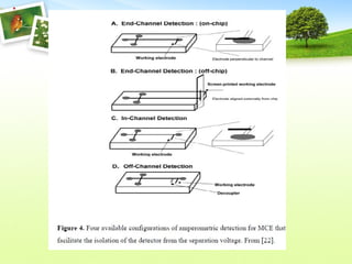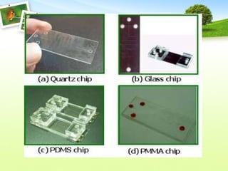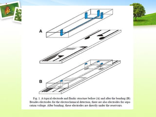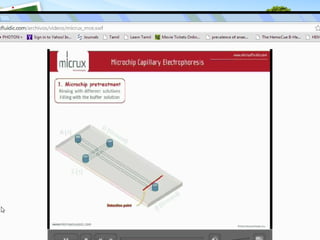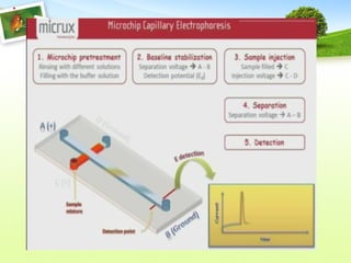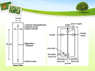 Microchip electrophoresis is a technique used to separate proteins, nucleic acids, and charged molecules in an electric field, which enhances speed and simplicity compared to traditional methods. While it allows rapid separation and automation, it faces challenges such as limited separation efficiency and low sensitivity in detection. The technology involves the creation of microchips with precise channel designs and detection methods like laser-induced fluorescence, aiming for cost-effective and efficient biochemical analysis.