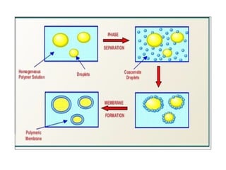 The document outlines various microencapsulation techniques including physio-mechanical, physio-chemical, and chemical methods such as air suspension, pan coating, spray drying, and coacervation. It explains processes for encapsulating solid and liquid core materials, their applications in pharmaceuticals, and the effects of different variables on the encapsulation process. Additionally, it discusses the benefits of microencapsulation, including drug protection and controlled release.