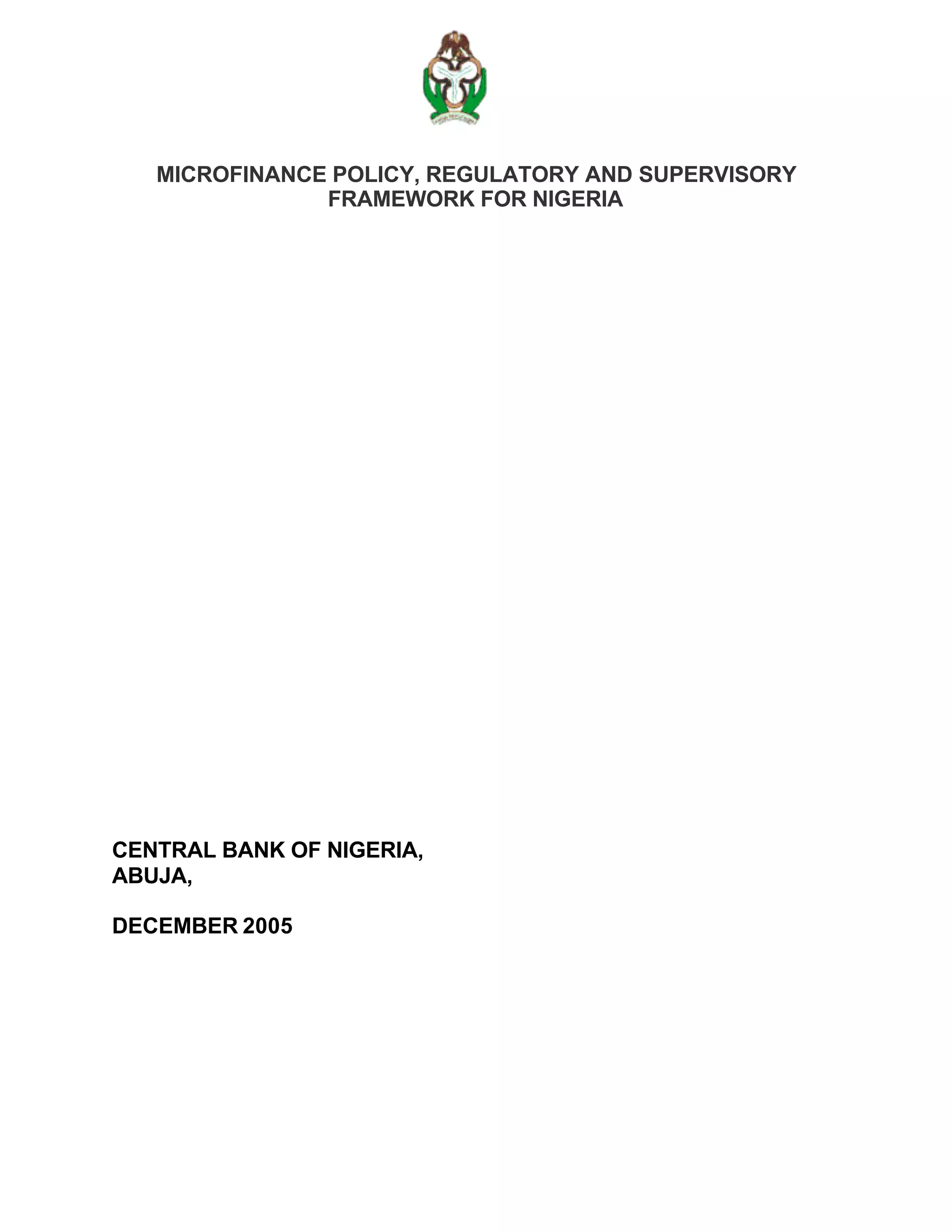 This document outlines Nigeria's microfinance policy and regulatory framework. It aims to establish microfinance banks to expand access to financial services for low-income individuals and small businesses. Key points include:
