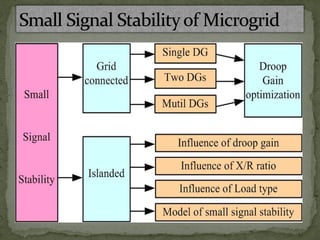 2. Peer-to-peer mode where all DGs use droop control to cooperatively regulate voltage and frequency without a master.