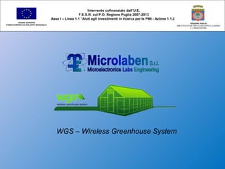 Il progetto WGS (Wireless Greenhouse System) è cofinanziato dall'UE per sviluppare un sistema di monitoraggio e controllo delle condizioni climatiche nelle serre, attraverso una rete wireless di sensori e attuatori. Microlaben S.r.l., spin-off del Politecnico di Bari, si impegna nella ricerca e nello sviluppo di dispositivi innovativi per l'automazione industriale e la telecomunicazione. Il sistema mira a migliorare la produttività agricola e la qualità delle colture, prevedendo anche proiezioni positive per il mercato e l'occupazione nelle aziende agricole.