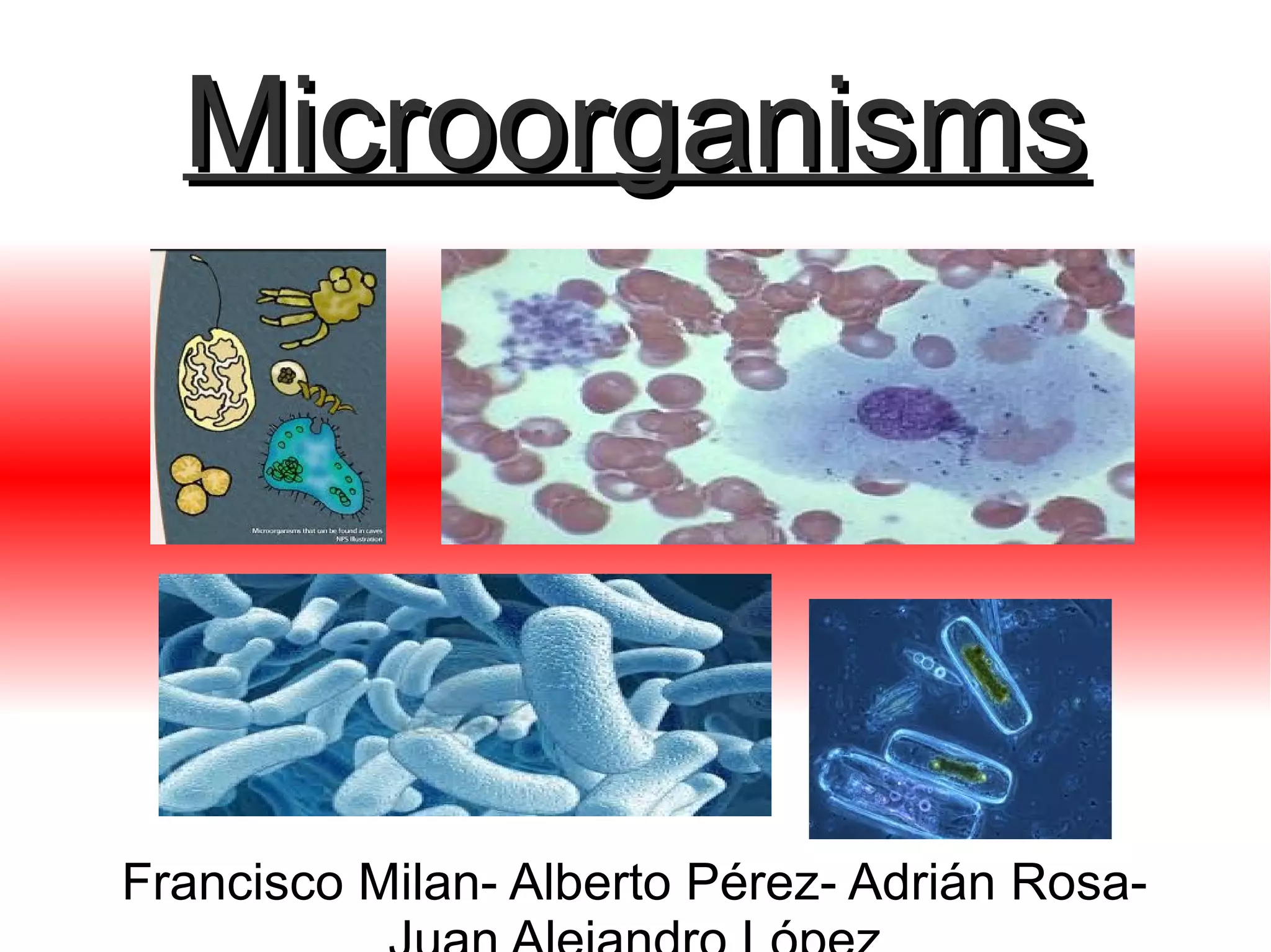 This document provides an overview of different types of microorganisms including bacteria, viruses, fungi, yeast, algae, protozoa. It discusses how some microorganisms can cause diseases like athlete's foot, tuberculosis, and chickenpox, but others can be useful in food production, cleaning waste, and creating antibiotics. It also profiles Alexander Fleming, the scientist who discovered the first antibiotic, penicillin, in 1928 and received the Nobel Prize for his work.
