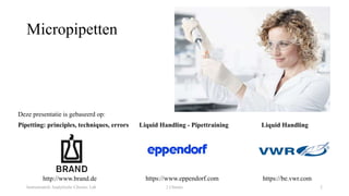 Deze presentatie behoort bij het lab Instrumentele Analytische Chemie van de opleiding 'professionele bachelor in de chemie'. De presentatie is opgebouwd uit verschillende bronnen die beschikbaar werden gesteld door vertegenwoordigers van Eppendorf, Brand en VWR.