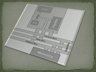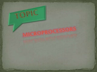 The document discusses the key components and evolution of microprocessors. It describes the main components of a microprocessor including the arithmetic logic unit (ALU), control unit, registers, and system bus. It provides details on how early microprocessors evolved from 1969 to have higher clock speeds, more transistors, and larger data buses and registers over time. Microprocessors have become more complex with tens of millions of transistors in current models.