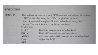 delay or arithmetic operation of repeated occurrence. The subroutine is written