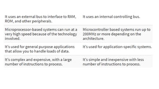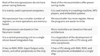 whereas Micro Controller contains a CPU, Memory, I/O all
