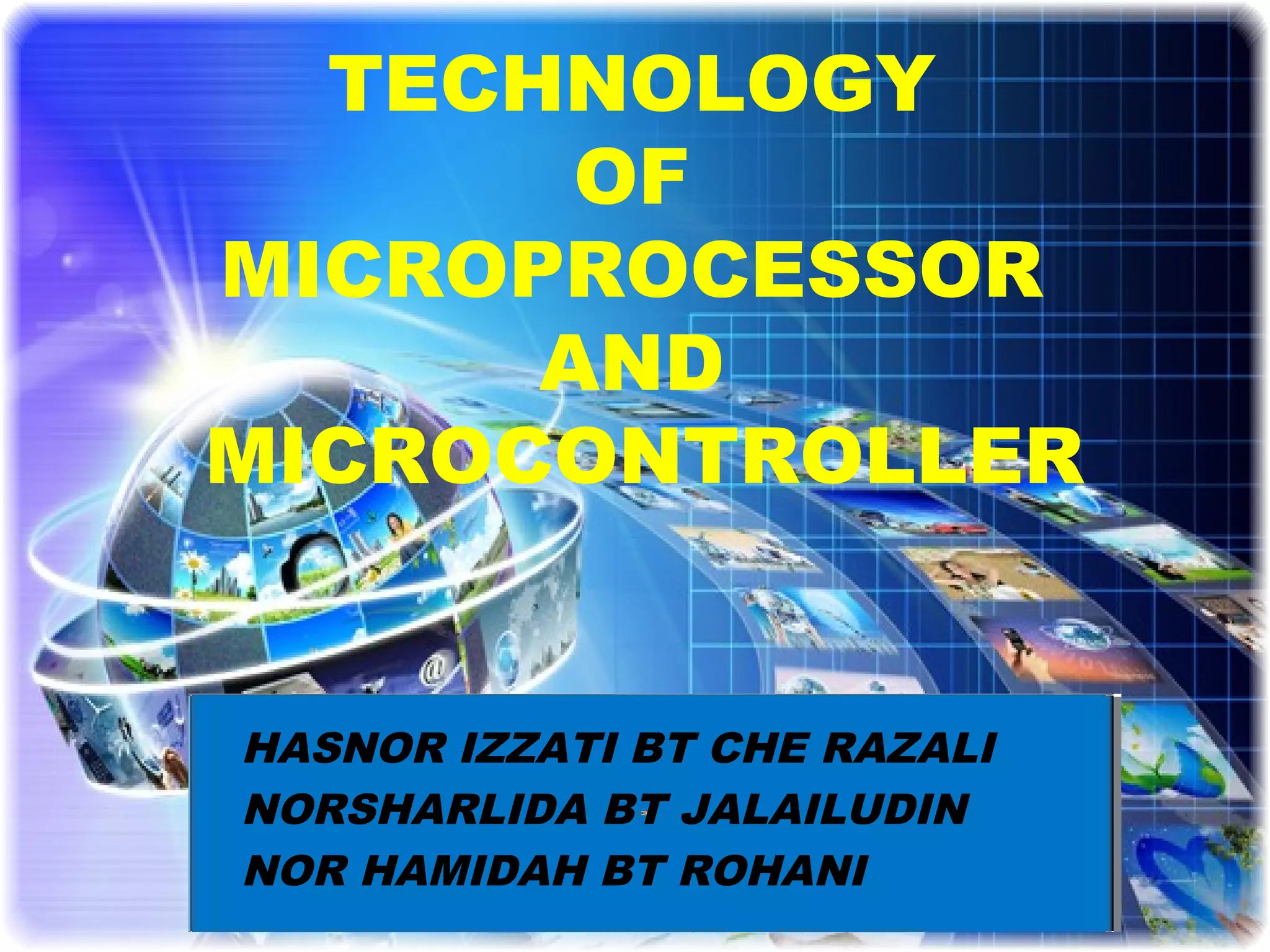 The document discusses the history and development of microprocessors and microcontrollers. It defines a microprocessor as a CPU integrated onto a single chip that serves as the central component of modern computers. Microcontrollers are similar but integrated with additional components like memory and I/O ports to control embedded systems. The first microprocessor was conceived in 1969 at Intel to power programmable calculators, and the first device was delivered in 1971. Microcontrollers were first created in 1971 and commercialized in 1974 to integrate all components needed to control a device. Modern microprocessors and microcontrollers now power many electronic devices from appliances to vehicles to cell phones.