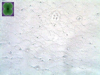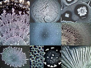 Il documento descrive un metodo innovativo di cristallizzazione delle gocce d'acqua per valutare la qualità degli alimenti utilizzando la microscopia a campo oscuro. Viene esaminato il fenomeno dell'auto-organizzazione della materia e le applicazioni della ricerca nei campi delle nanotecnologie, della medicina e della diagnosi. I risultati mostrano che i trattamenti omeopatici e le condizioni di luce influenzano la cristallizzazione e la vitalità delle piante di fagiolo e del frumento.