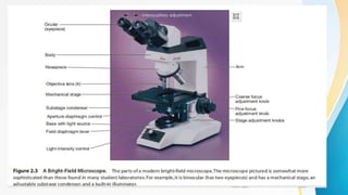 The document provides a comprehensive overview of microscopy, detailing various types and their applications, including light, electron, dark-field, phase-contrast, and fluorescence microscopes. It outlines key concepts such as magnification, resolution, and contrast, while also discussing the advantages and limitations of each microscopy technique. Additionally, it emphasizes the significance of different microscopy methods in studying living cells, microorganisms, and their structures in various biological and clinical contexts.