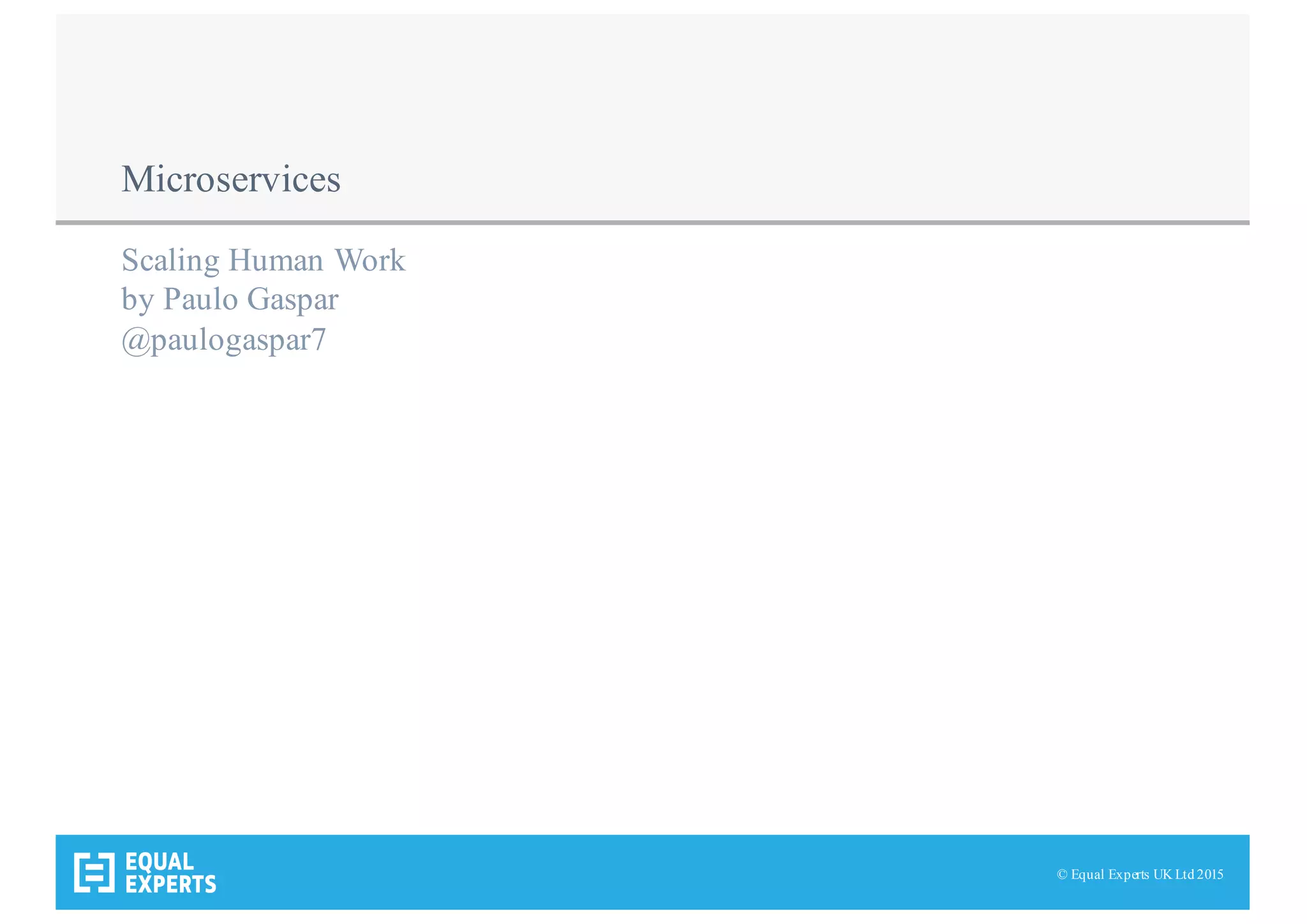 The document discusses microservices and the benefits of developing using a microservices architecture. It describes the author's experience working on both large monolithic systems and microservice architectures. Some key benefits of microservices mentioned include improved knowledge sharing, faster progress and adoption of new technologies, easier elimination of technical debt, and increased accountability. The author argues that developing with microservices can achieve scalable high productivity, but certain factors like doing agile well and defining roles appropriately are required to realize the benefits.