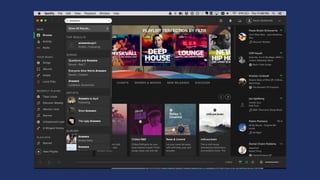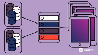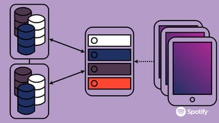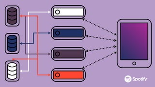 The document discusses how Spotify utilizes autonomous full-stack teams to efficiently build a large-scale application that meets complex demands, such as scalability and rapid innovation. With over 90 teams and 600 developers, Spotify manages around 810 active microservices that allow for independent scaling, testing, and deployment. However, the document also highlights challenges such as monitoring and increased latency associated with microservices.