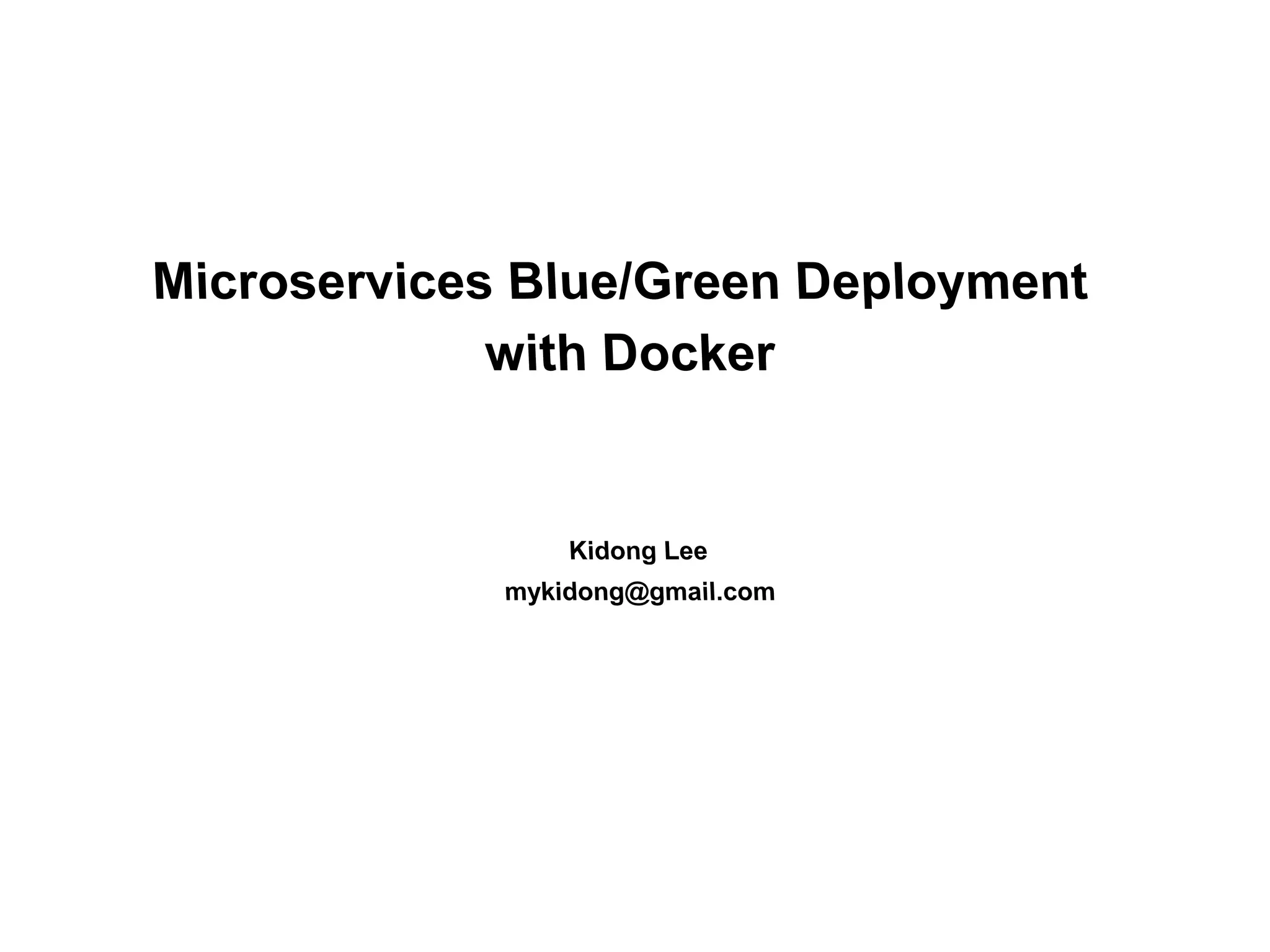 The document describes an architecture for blue/green deployments of microservices using Docker Swarm, Consul for service discovery, and Ansible for configuration management. The architecture allows seamless switching between a "blue" and "green" version of a service without downtime. Docker Compose is used to deploy the services to the Swarm cluster. Consul templates update the nginx configuration to route traffic to the active version based on service registration in Consul.