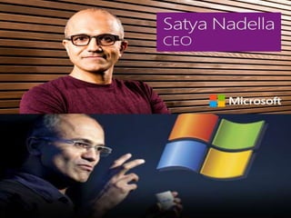 Satya Nadella is the CEO of Microsoft. He was born in Hyderabad, India and received degrees in engineering and computer science from Indian universities before earning an MBA from the University of Chicago. He has worked at Microsoft for over 20 years, holding several leadership roles related to cloud computing and business strategy. In 2014, at age 46, he became the third CEO in Microsoft's history. As CEO, Nadella is focused on driving innovation and collaboration to empower people and organizations around the world.