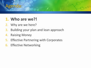 The document provides tips for entrepreneurs from Microsoft's Emerging Business Team in France and the UK. It discusses building a lean startup approach with incremental deliveries and iterative testing. Entrepreneurs are advised to delay design decisions, fail fast and early, and validate their minimum viable product and market hypotheses quickly. The document also covers effective pitching, partnering with large corporations, and networking strategies.