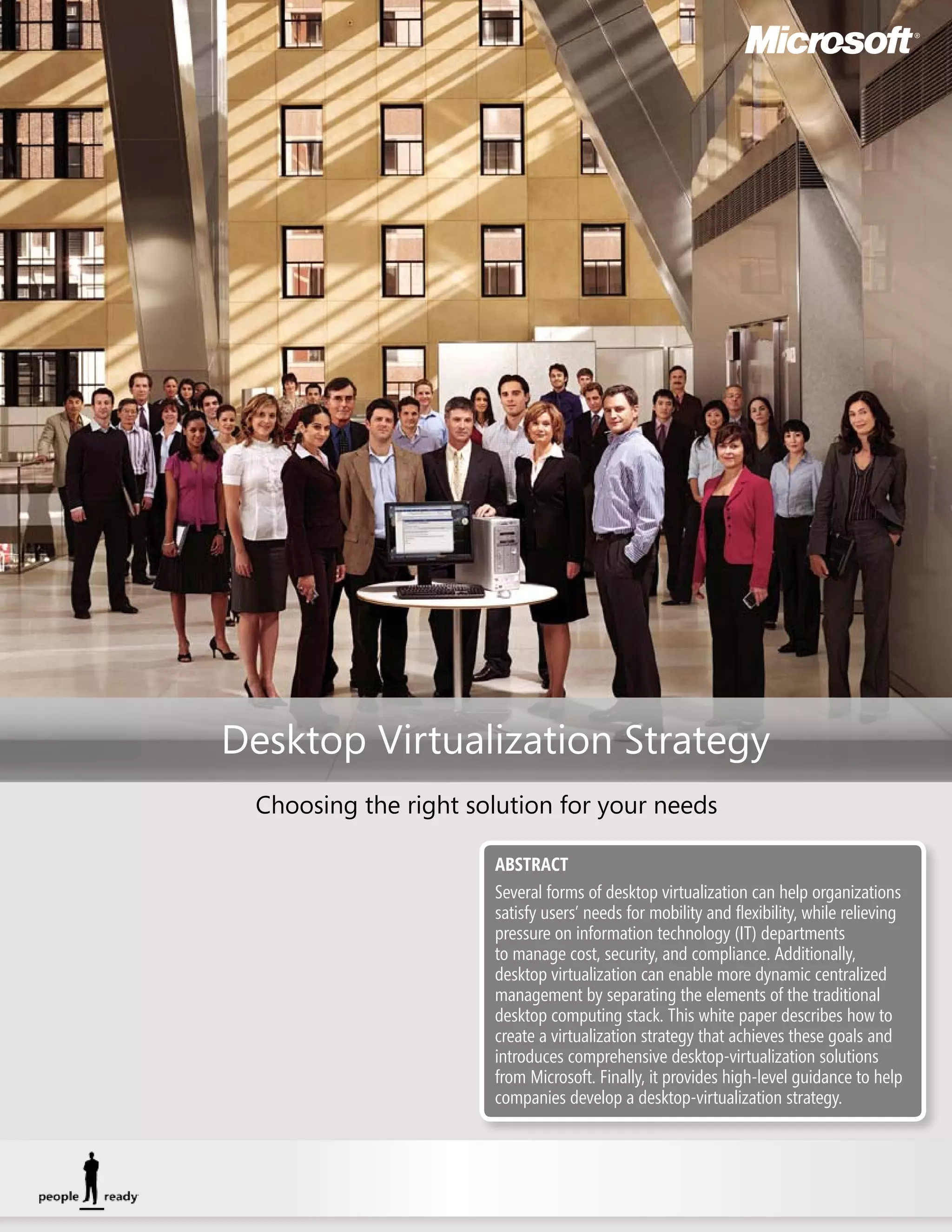 This document outlines the importance of desktop virtualization in addressing the evolving needs of organizations and IT departments for mobility, flexibility, and centralized management. It discusses various virtualization strategies, technologies, and solutions, highlighting the challenges of managing user data, app compatibility, security, and costs. Companies are encouraged to develop a tailored desktop virtualization strategy by mapping technologies, defining user needs, and matching suitable solutions to effectively enhance productivity and security.