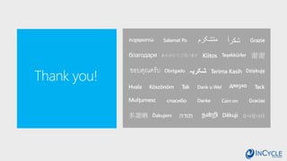 The webinar covered Microsoft development tools and platforms for 2015, presented by David Pitcher from InCycle Software. The agenda included topics on cloud deployment projects, continuous delivery models, troubleshooting distributed applications, and collaboration tools in Visual Studio. The presentation emphasized how tools like Visual Studio, Visual Studio Online, and Azure help teams achieve continuous integration and delivery through an automated pipeline with testing and release management.