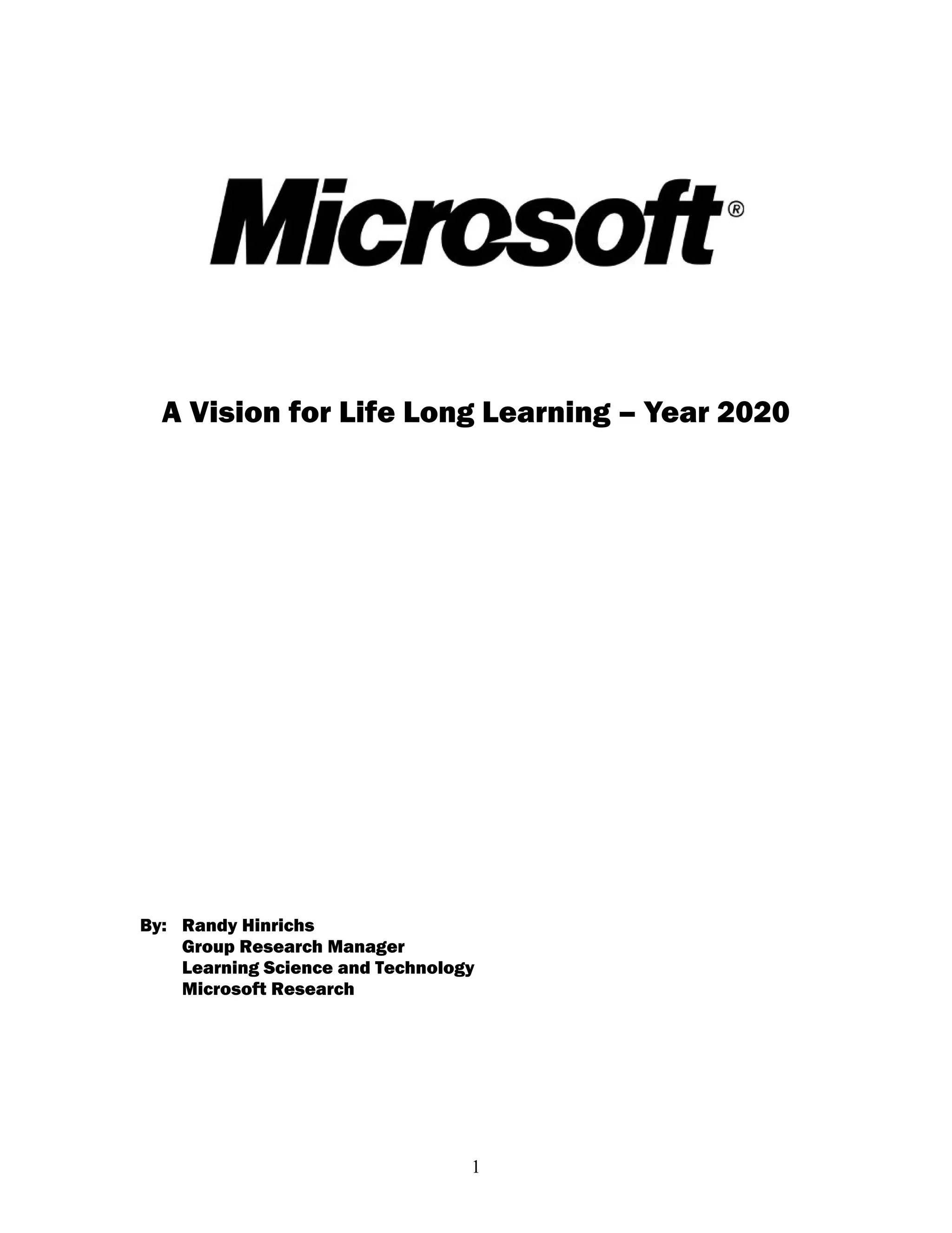 This document provides a vision for lifelong learning and education in the year 2020, enabled by advances in educational technology. Key elements include: