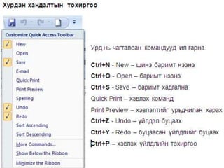 Документ представляет собой руководство по использованию программы Microsoft Excel 2007, включающей объяснения основных функций, интерфейса и команд. Описаны возможности редактирования, форматирования, вставки и настройки страниц, а также работа с формулами и графиками. В целом, материал служит пособием для учителей, обучающих студентов основам работы с Excel.