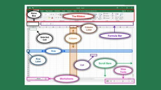 Microsoft Excel is a spreadsheet program developed by Microsoft, which allows users to format, organize, and calculate data. It includes features such as workbooks, worksheets, various data navigation tools, conditional formatting, and formula functions for efficient data handling. Excel provides a user-friendly interface with tools like the ribbon, quick access toolbar, and a status bar to enhance productivity.