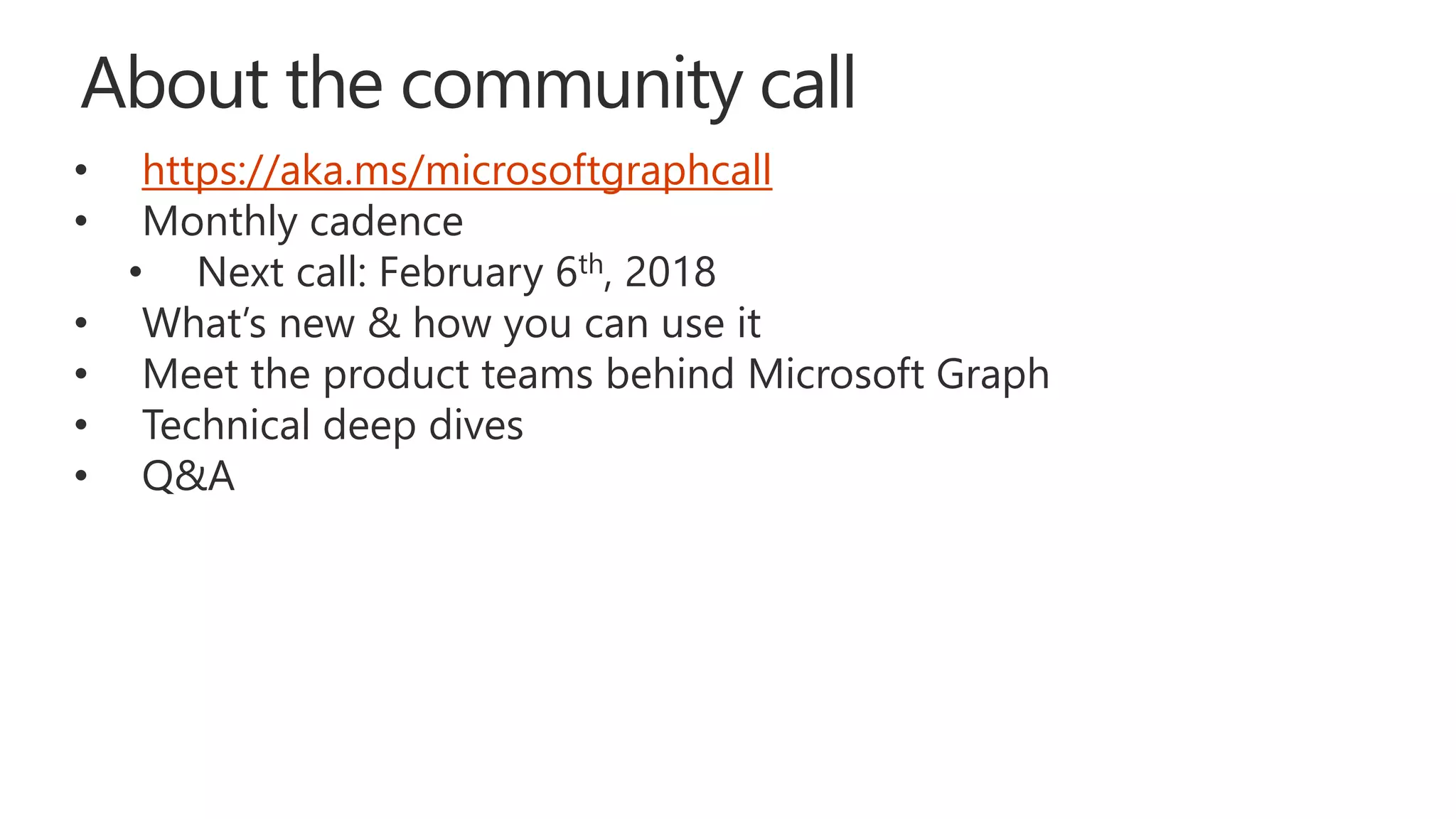 The document outlines the agenda for the Microsoft Graph community call held on January 2, 2018, highlighting topics such as product team introductions, technical deep dives, and user Q&A. It provides insights into accessing user and organizational data via various Microsoft Graph API endpoints and mentions upcoming developments like the Java SDK for Microsoft Graph. Attendees are encouraged to participate in demonstrations and provide feedback on new features.