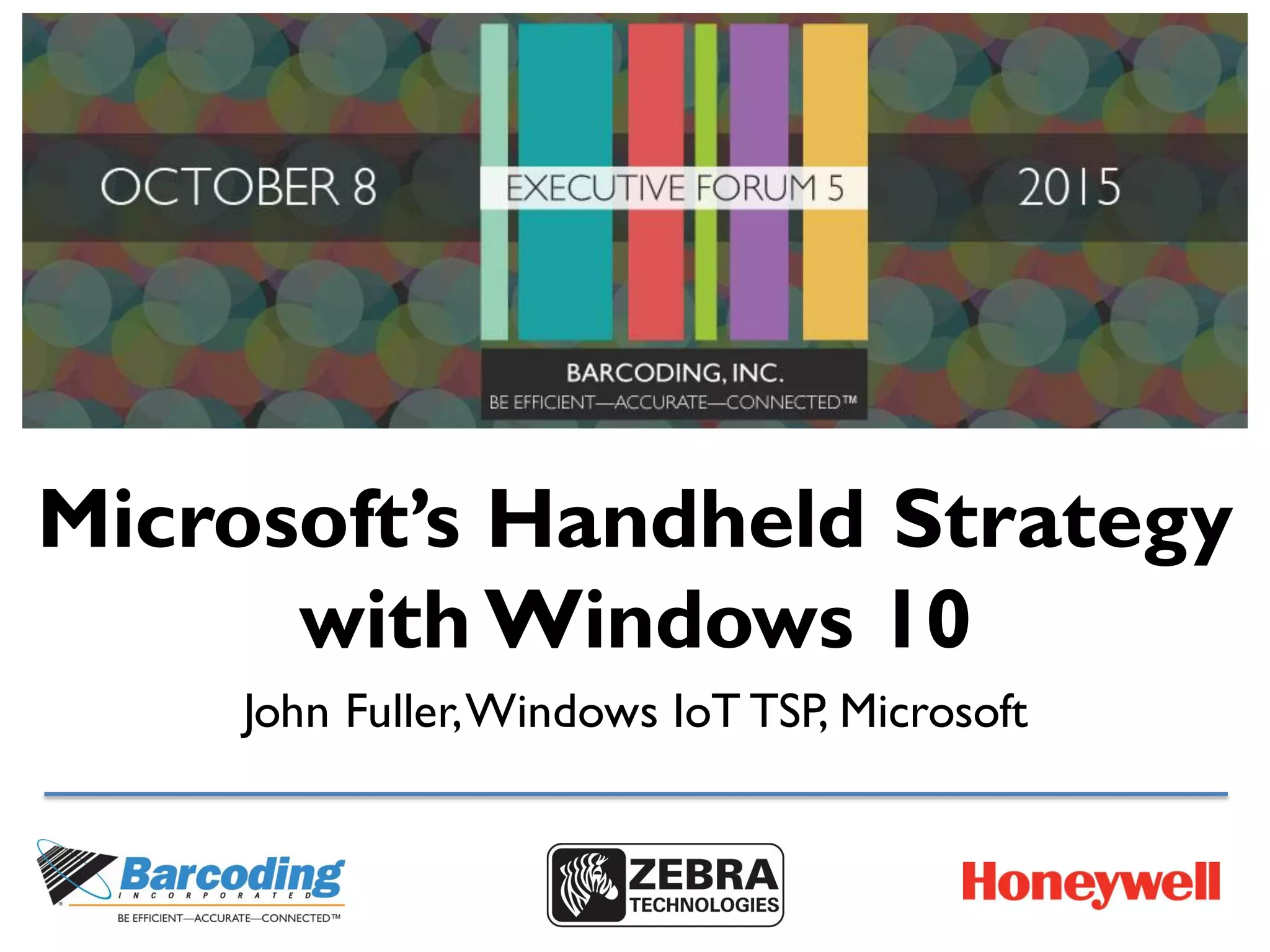 Microsoft's handheld strategy focuses on IoT solutions with Windows 10 by offering various editions like Windows 10 IoT Enterprise, Mobile Enterprise, and Core for different device types, addressing security and manageability aspects. The Universal Windows Platform (UWP) allows developers to create one app for all Windows 10 editions, enhancing ROI and leveraging existing development skills. Microsoft's approach emphasizes advanced security measures, consistent device management through a unified platform, and support lifecycles for enterprise devices.