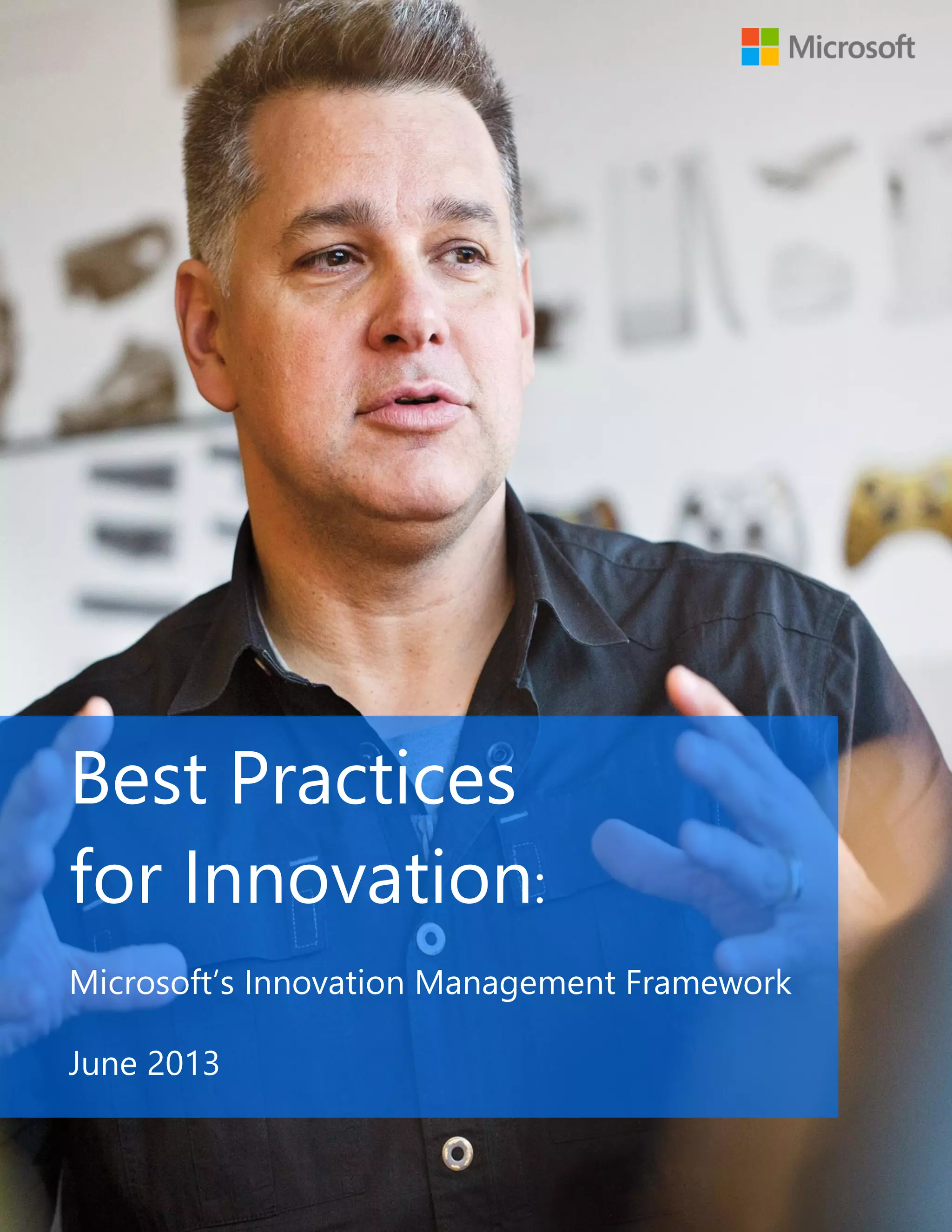 The document outlines Microsoft's Innovation Management Framework, which provides best practices and a technology roadmap for managing innovation. The framework addresses innovation challenges through processes like Envision, Engage, Evolve, Evaluate and Execute. It also discusses the importance of leadership, culture and formalizing innovation processes. Case studies and technologies are presented to illustrate how companies can improve innovation performance. The framework is intended to help companies develop comprehensive strategies for managing innovation.