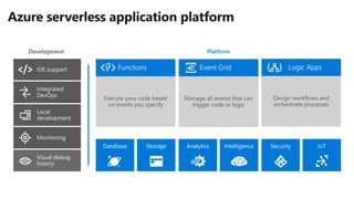 The document details Microsoft Azure App Services, which enables the rapid development, deployment, and scaling of cloud applications without the need for infrastructure management. It highlights features such as high productivity across various programming languages, enterprise-grade performance, built-in CI/CD, and integration with services like Azure Functions and Cognitive Services. Additionally, it emphasizes Azure's robust support for security, compliance, and hybrid applications, catering to diverse enterprise needs.