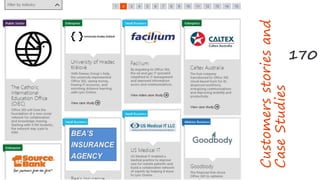 Office 365 provides tools for knowledge sharing, organizing, and extracting across various organizations. It allows over 30,000 Toyota employees to seamlessly share information across devices. The Catholic International Education Office plans to use Office 365 to create a social network for 4.5 million students to collaborate. Office 365 offers file sharing through OneDrive, social networking features like newsfeeds and hashtags, and communication tools like web conferencing. It provides customizable SharePoint sites for teams to organize information. Power BI enables powerful data search, cleaning, merging, and analysis directly within Excel.