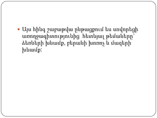 առողջագիտությունից հետևյալ թեմաները`