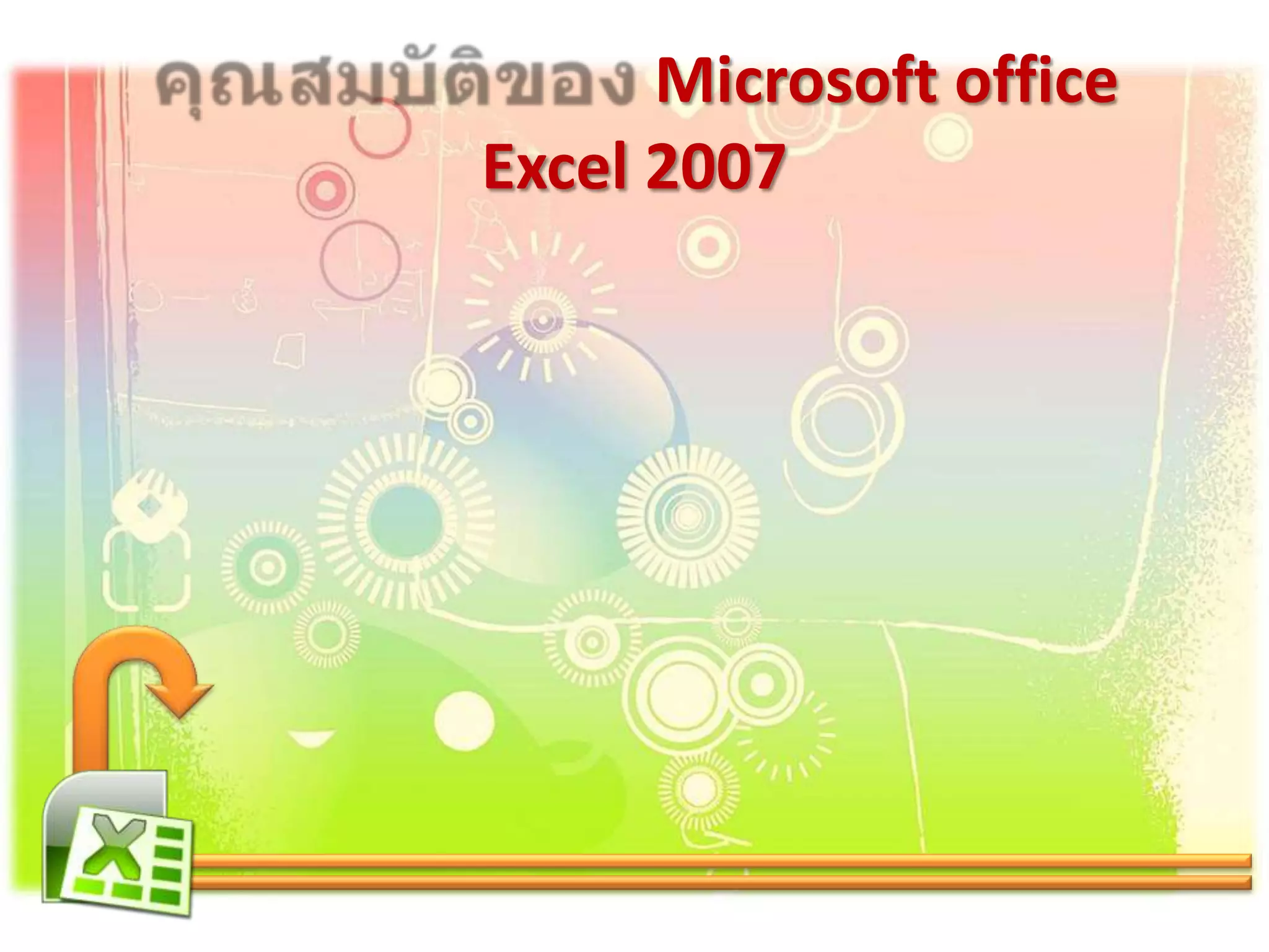 Microsoft Office Excel 2007 is a spreadsheet program that is part of the Microsoft Office system. It introduced a new graphical user interface called Fluent User Interface, as well as new functions and features. These include features for organizing and analyzing data like PivotTables, integration with Excel Services and SharePoint Server 2007, and improved support for online analytical processing using SQL Server 2005 Analysis Services.