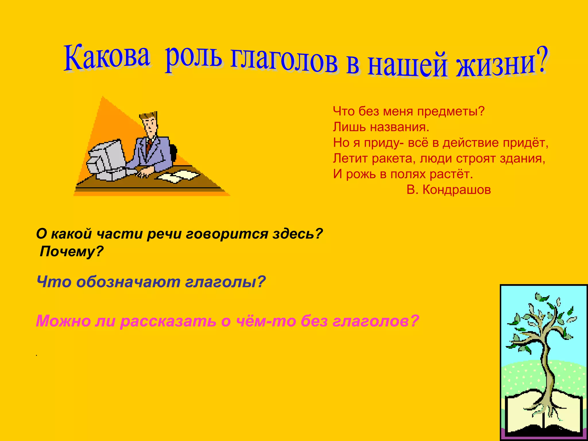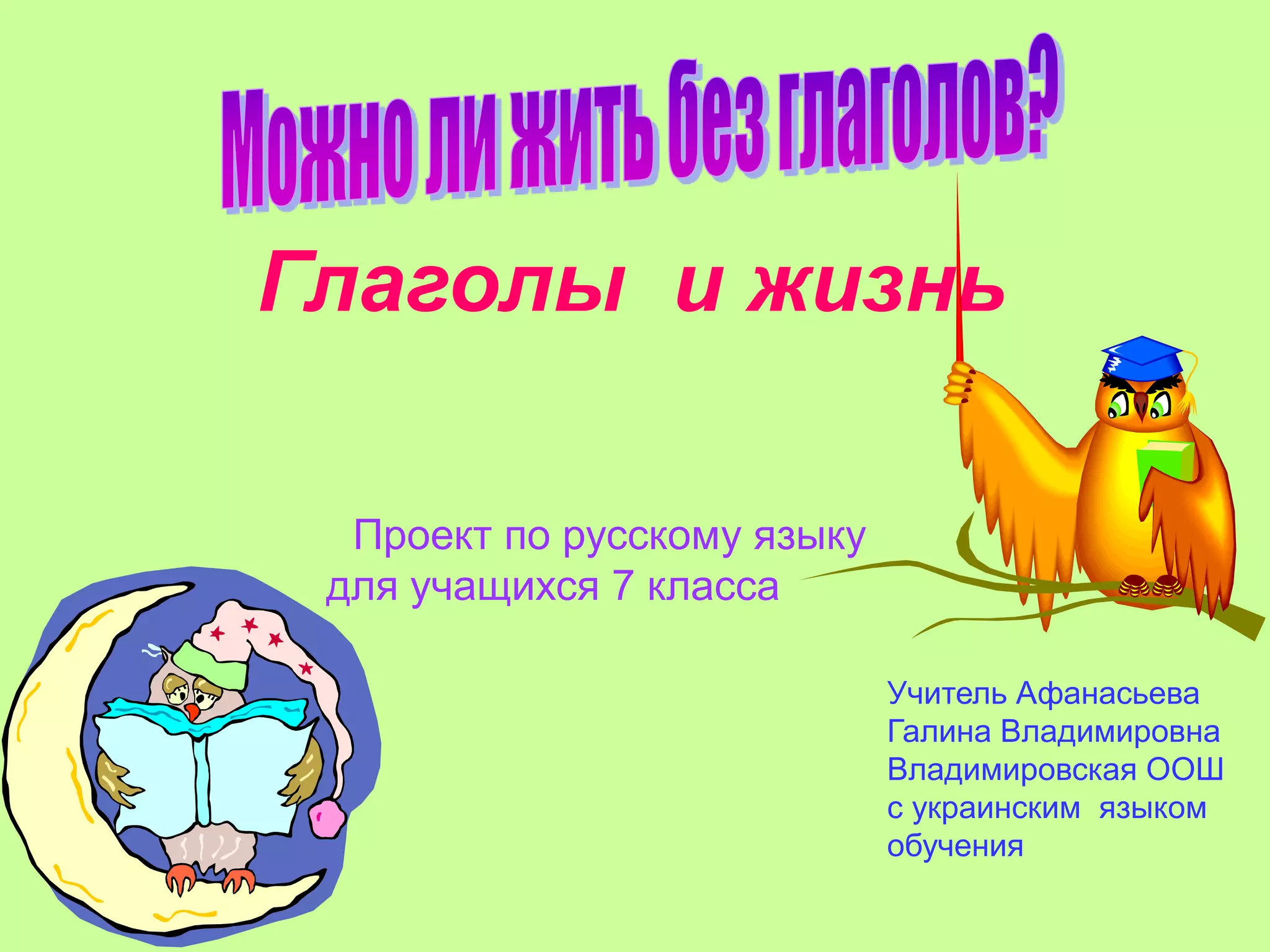 Документ представляет проект по русскому языку для учащихся 7 класса, посвященный глаголам. Учащиеся научатся распознавать глаголы, правильно их употреблять и усваивать орфограммы, выполняя различные задания и создавая презентации. Проект включает исследовательскую работу в группах и использование мультимедийных ресурсов.