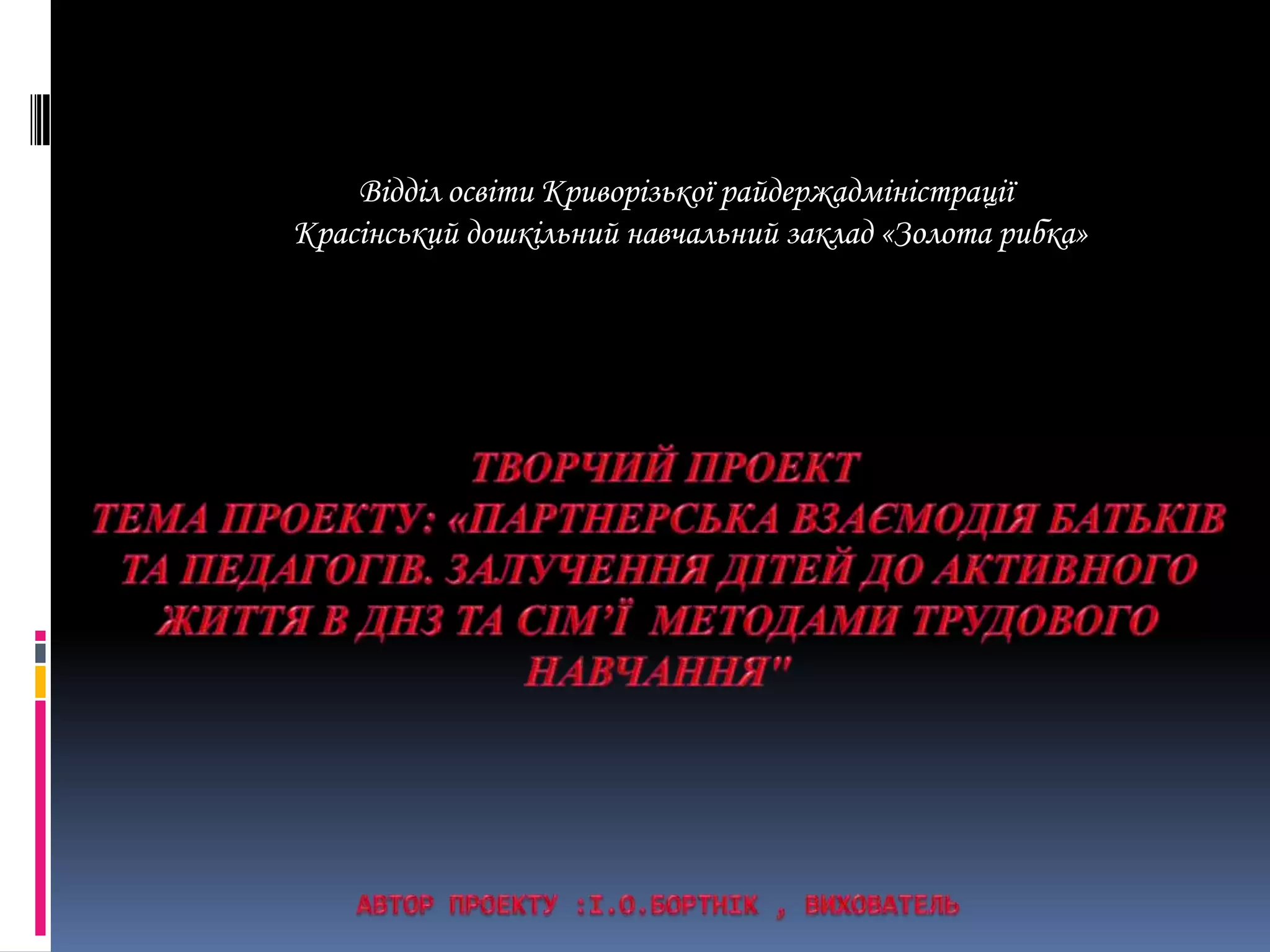 В рамках проекту зміцнюється позиція педагога, батьків та дітей. Педагог