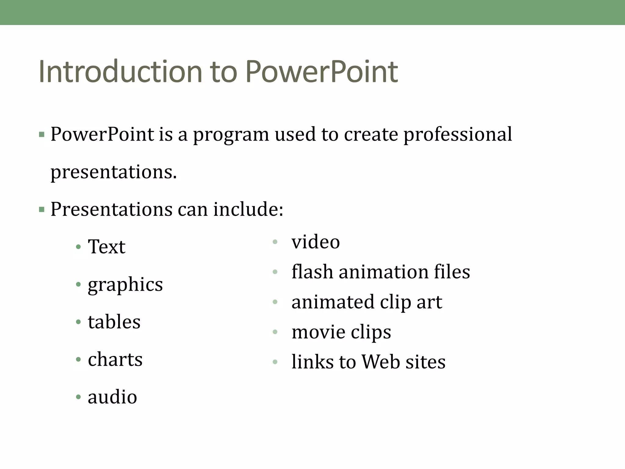 PowerPoint is a program used to create professional presentations that can include text, graphics, tables, charts, audio, video and other media. It allows users to easily enter and edit information, incorporate content from other sources, and present information in various ways. Effective presentations require planning, including determining the message, audience and delivery method. PowerPoint provides various views and tools to organize, design and deliver presentations.