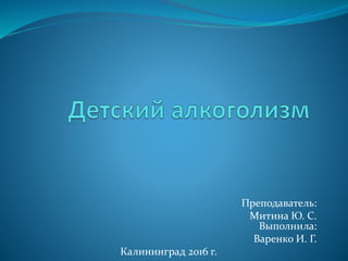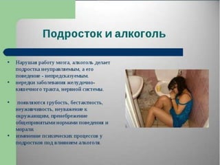 Алкоголизм — это заболевание, связанное с зависимостью от алкоголя, характеризующееся потерей контроля над его употреблением и негативными последствиями для здоровья. Проблема алкоголизации детей и подростков в России является актуальной, при этом их раннее приобщение к алкоголю происходит чаще всего в семье и в возрасте 12-13 лет. Высокий уровень злоупотребления алкоголем среди молодежи ведет к снижению успеваемости и ухудшению социальных условий в семьях.