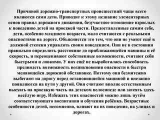 На родительском собрании обсуждались основные правила дорожного движения и необходимость обучения детей безопасному поведению на улице. Основное внимание было уделено возрастным особенностям восприятия детьми дорожной обстановки и причинам дорожно-транспортных происшествий, связанным с их неопытностью. Подчеркивалась важность родительского примера и активного участия в обучении детей безопасным действиям на дорогах.