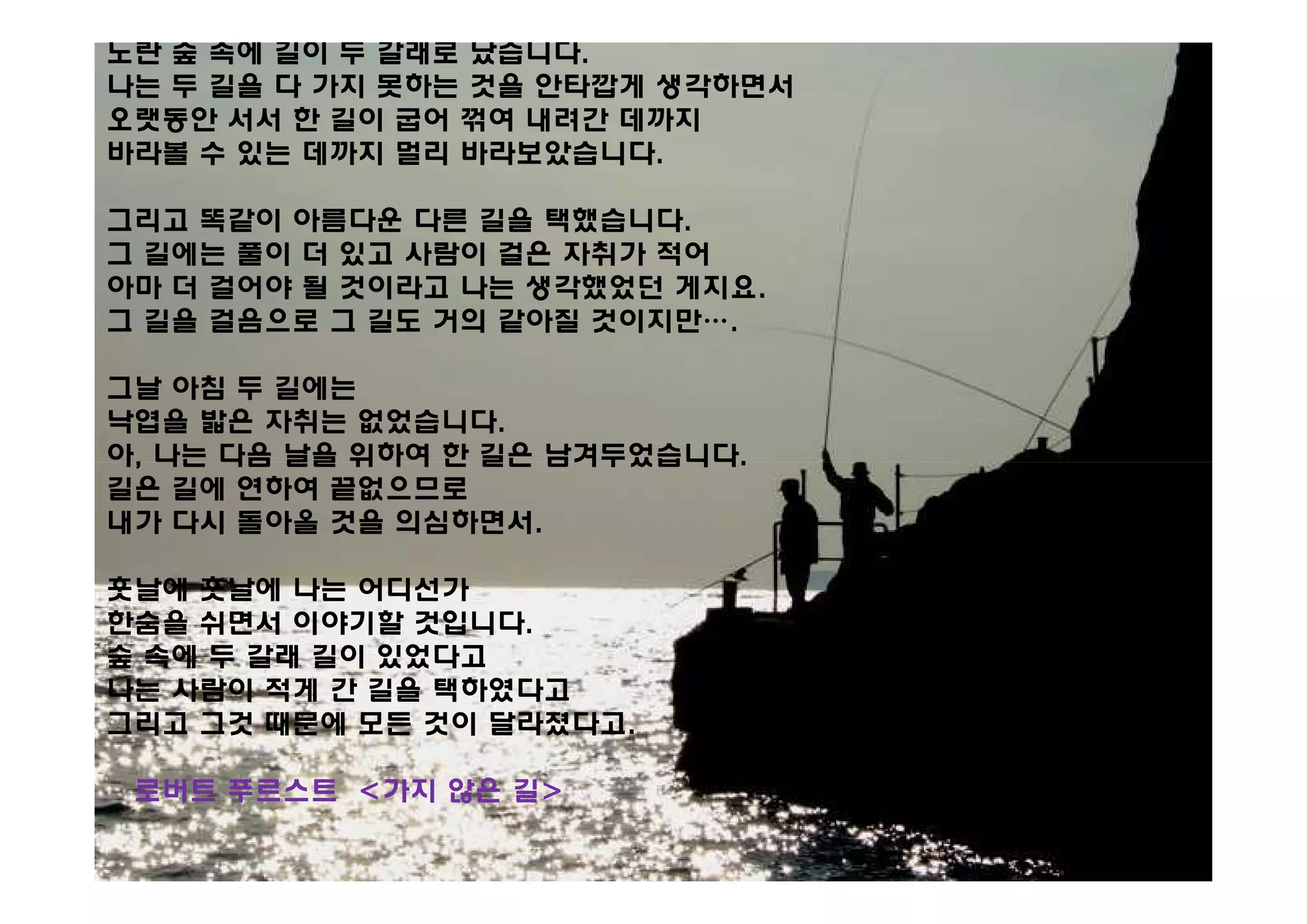 노란 숲 속에길이 두 갈래로 났습니다.
