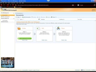 This document discusses using different Microsoft Office tools for teaching. It mentions using Powerpoint for presentations, Excel for spreadsheets, Office Live for collaboration, and OneNote for students to take notes.