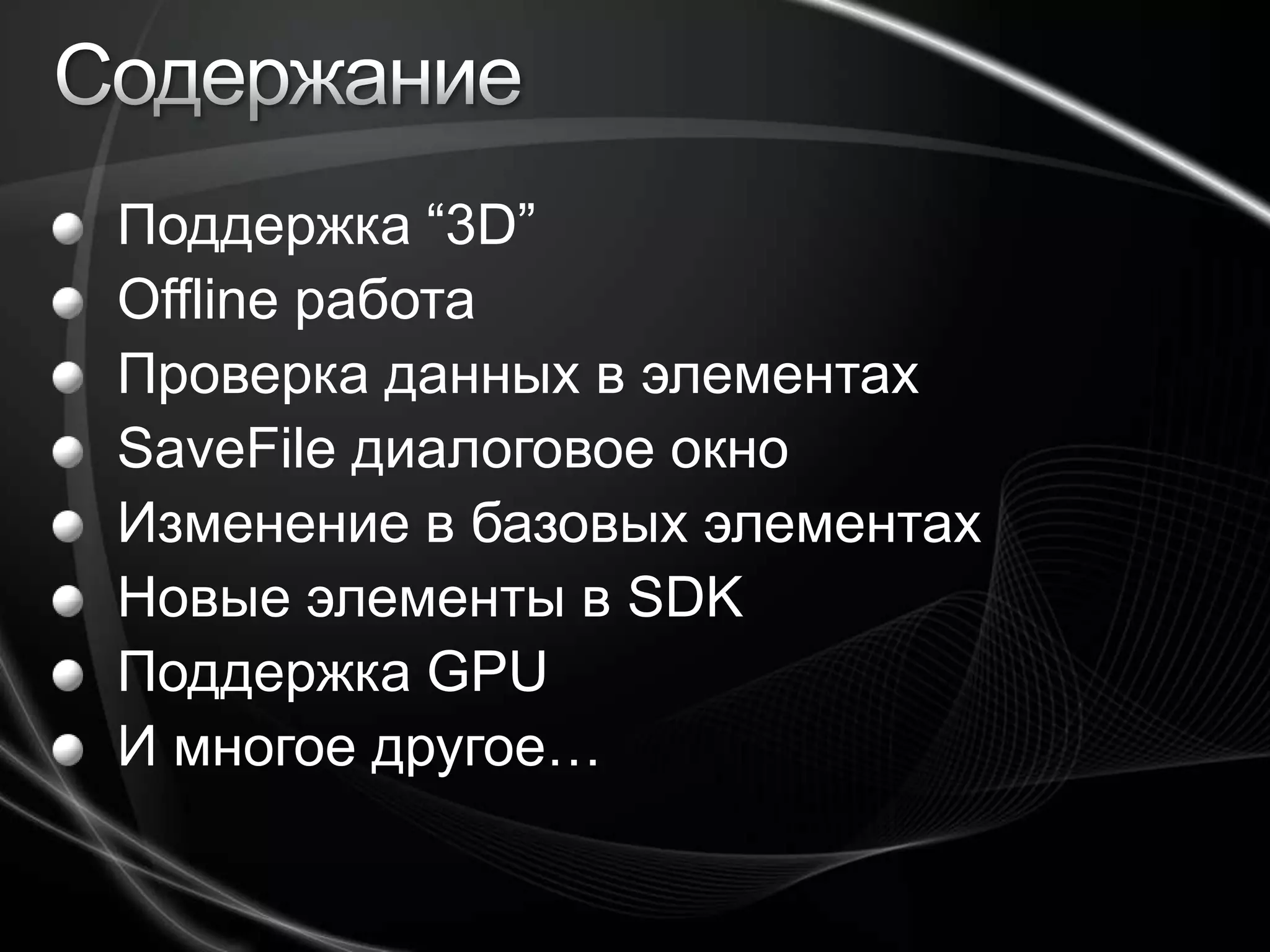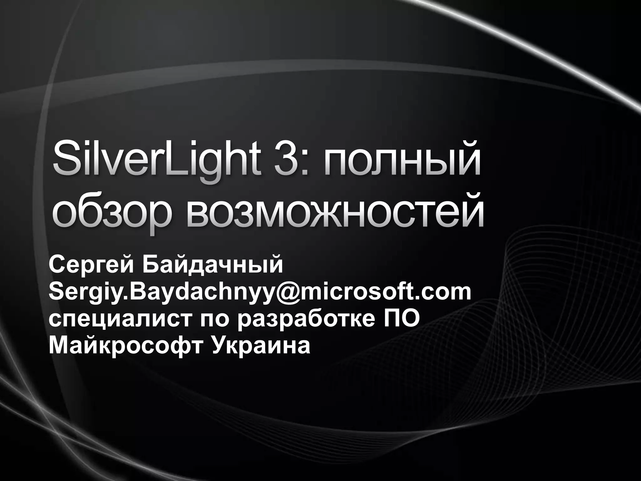 Документ описывает программу BizSpark от Microsoft для стартапов, предлагающую бесплатные инструменты разработки и тренинги на срок три года. Также представлен обзор возможностей Silverlight 3, включая поддержку 3D, улучшенное взаимодействие с данными и новые элементы SDK. Документ содержит множество примеров кода и демонстраций функциональности, включая работу с изображениями и шрифтами.