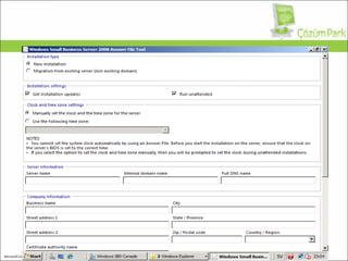 Kısıtlamalar SBS sunucunuzdatek network kartı kullanabilirsiniz. SBS Sunucunuz tüm FSMO rollerini barındırmalı C hild domain eklenemez ve cross-forest trusts yok 75 kullanıcı/aygıt limiti Uygulama modunda Terminal Services bulunmuyor İkinci server Terminal Server olabilir