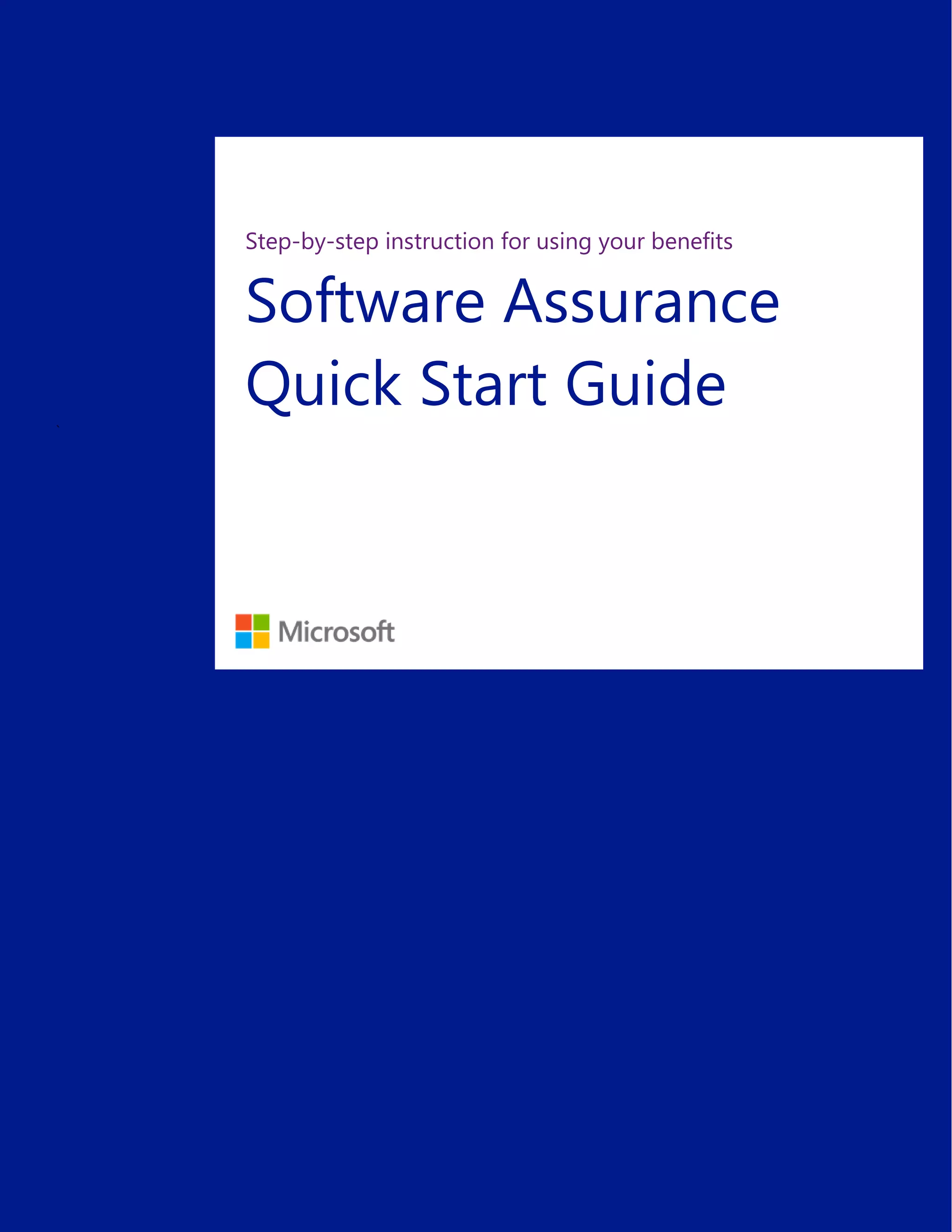 This document provides instructions for using Microsoft Software Assurance benefits, including: