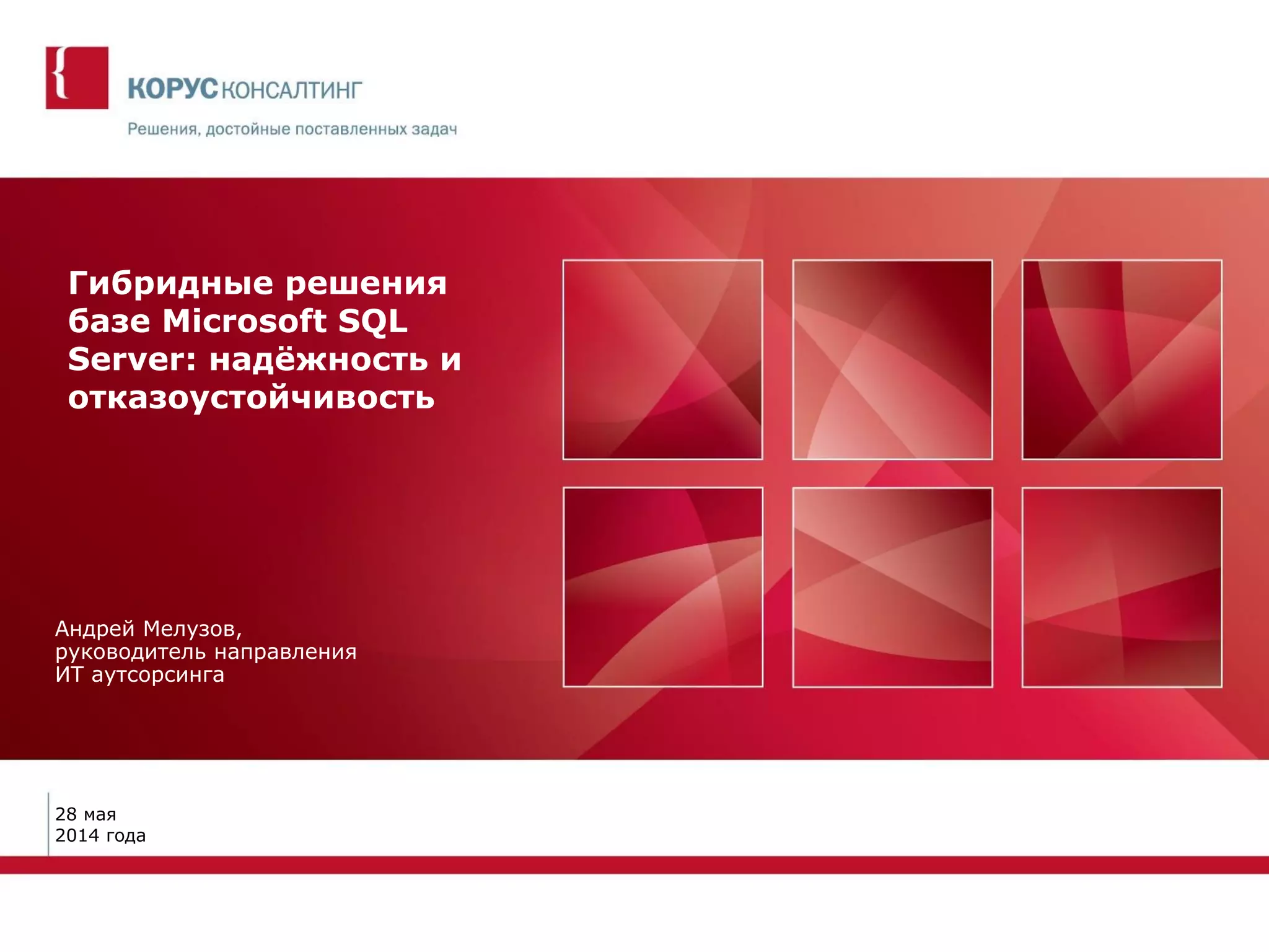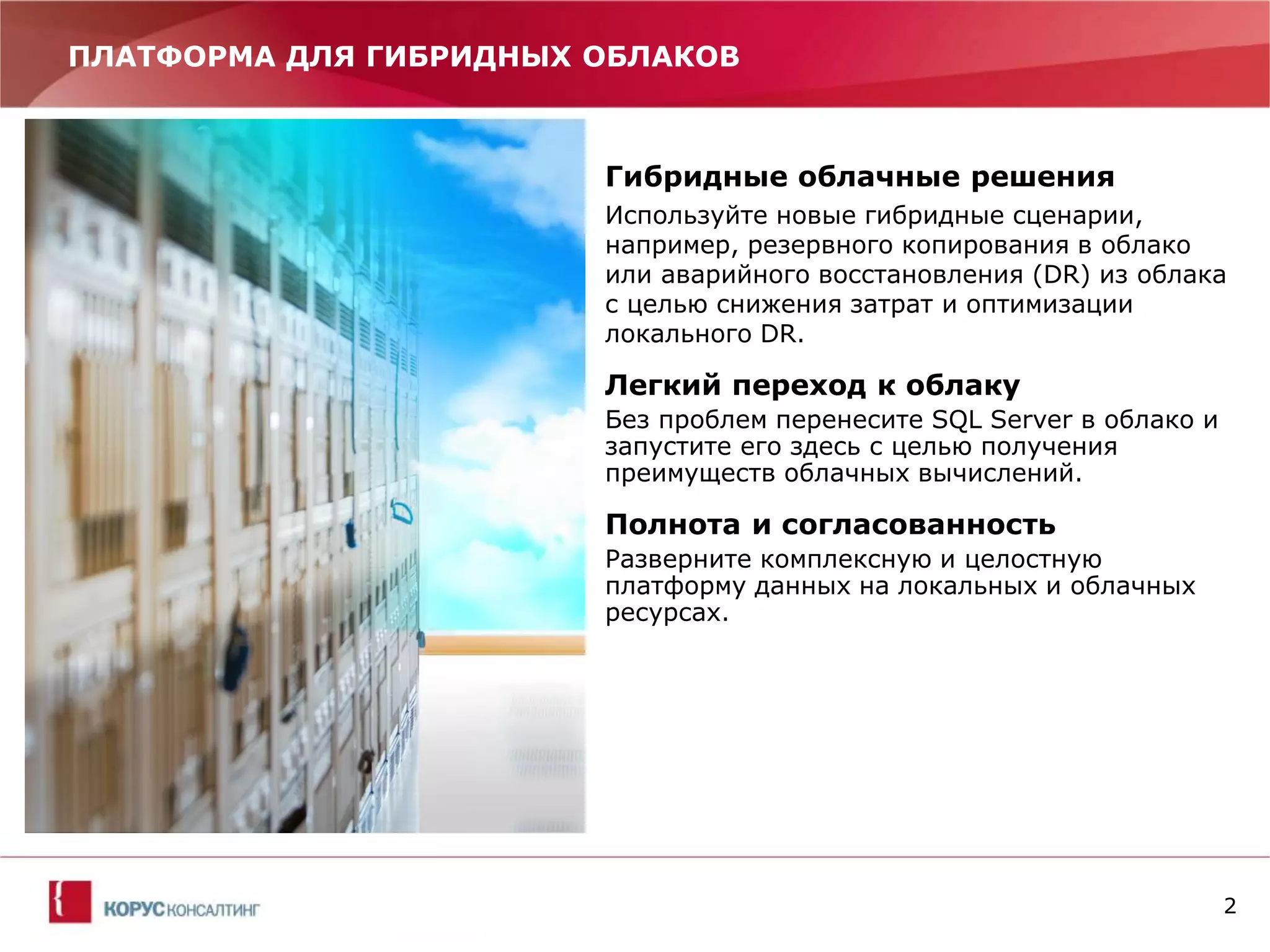Документ описывает гибридные решения на базе Microsoft SQL Server, акцентируя внимание на их надежности, возможности быстрого восстановления и простоте управления. Он подчеркивает преимущества облачных средств резервного копирования и расширения локальных приложений, а также возможности миграции к облаку. В документе также указана информация о контактах и приглашение на вебинар.
