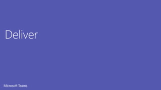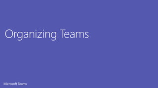 The document provides an agenda and objectives for a workshop on launching Microsoft Teams in an organization. The agenda covers introducing Teams, assessing the current IT environment and licenses, planning the Teams deployment including network and security considerations, organizing teams and channels, and change management for adoption. The workshop aims to help attendees gain deeper knowledge of Teams to enhance capabilities for planning, delivering, and operating Teams, and to build the foundation for Teams in the organization.