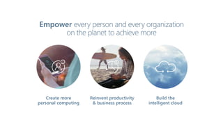 The Microsoft Vision & Strategy Keynote outlines the company's commitment to a mobile-first, cloud-first world, aiming to empower individuals and businesses through its extensive cloud services and productivity tools. Key data points highlight Microsoft's dominance in cloud infrastructure, with significant usage statistics from Fortune 500 companies and substantial growth in Office 365 and Azure. The keynote emphasizes transforming businesses digitally and providing a seamless customer experience, establishing Microsoft as a leader in critical cloud service areas.