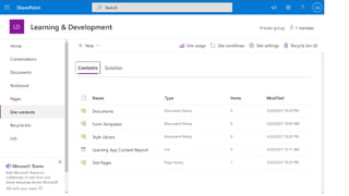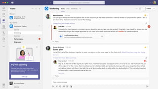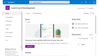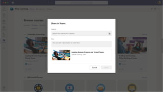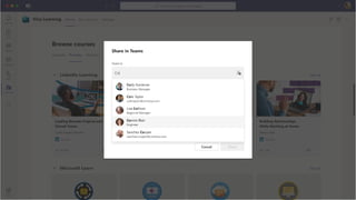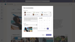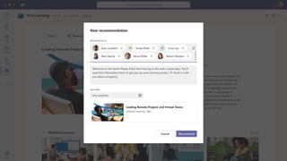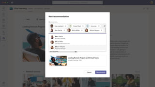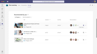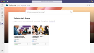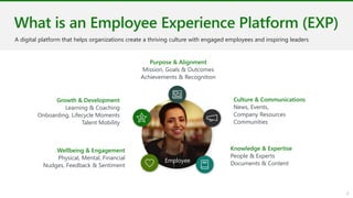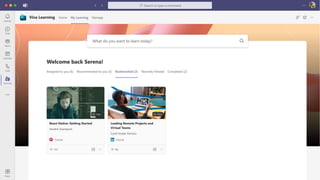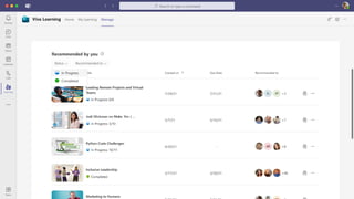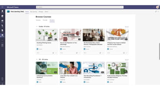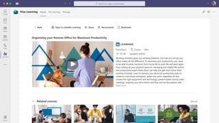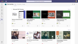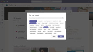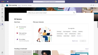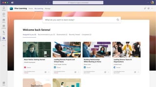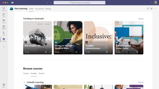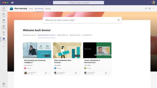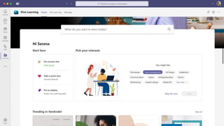 The document presents Microsoft Viva, an employee experience platform designed to enhance workplace culture and employee engagement by integrating learning into daily workflows using Microsoft Teams and Microsoft 365. It aims to address the skills gap in the workforce, allowing employees to easily discover, share, and track learning through a centralized hub that aggregates content from various sources. Key features include personalized recommendations, social learning capabilities, and the ability to connect with learning management systems for a comprehensive view of employee development.