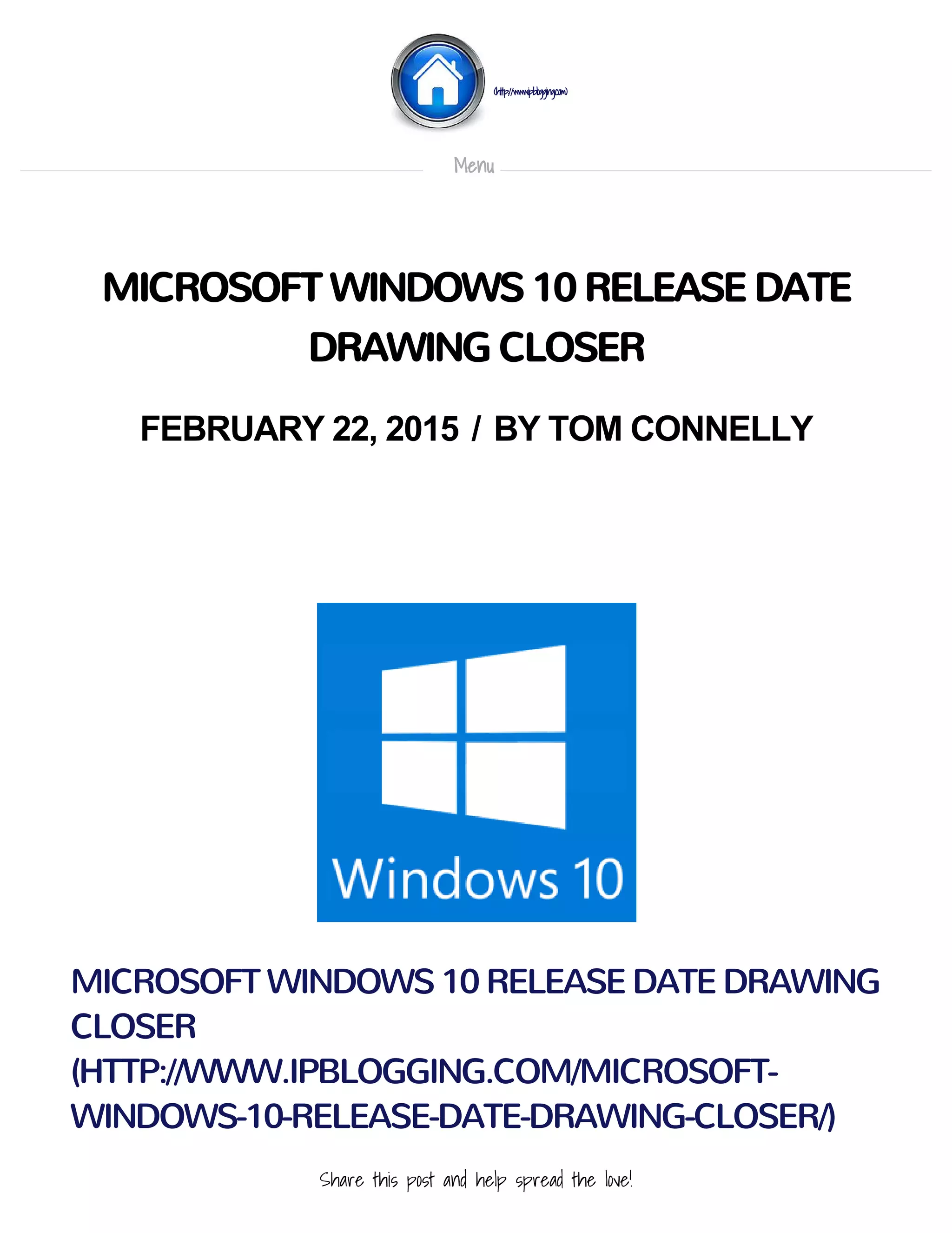 The document discusses the anticipated release of Microsoft Windows 10, which is expected to address the criticisms of Windows 8 by reintroducing a Start menu and offering a unified interface across devices. Key features include a single app ecosystem allowing cross-platform functionality, improved multitasking, and the voice assistant Cortana. A free upgrade for Windows 7 and 8 users is also announced, aiming to regain market share lost during the Windows 8 era.